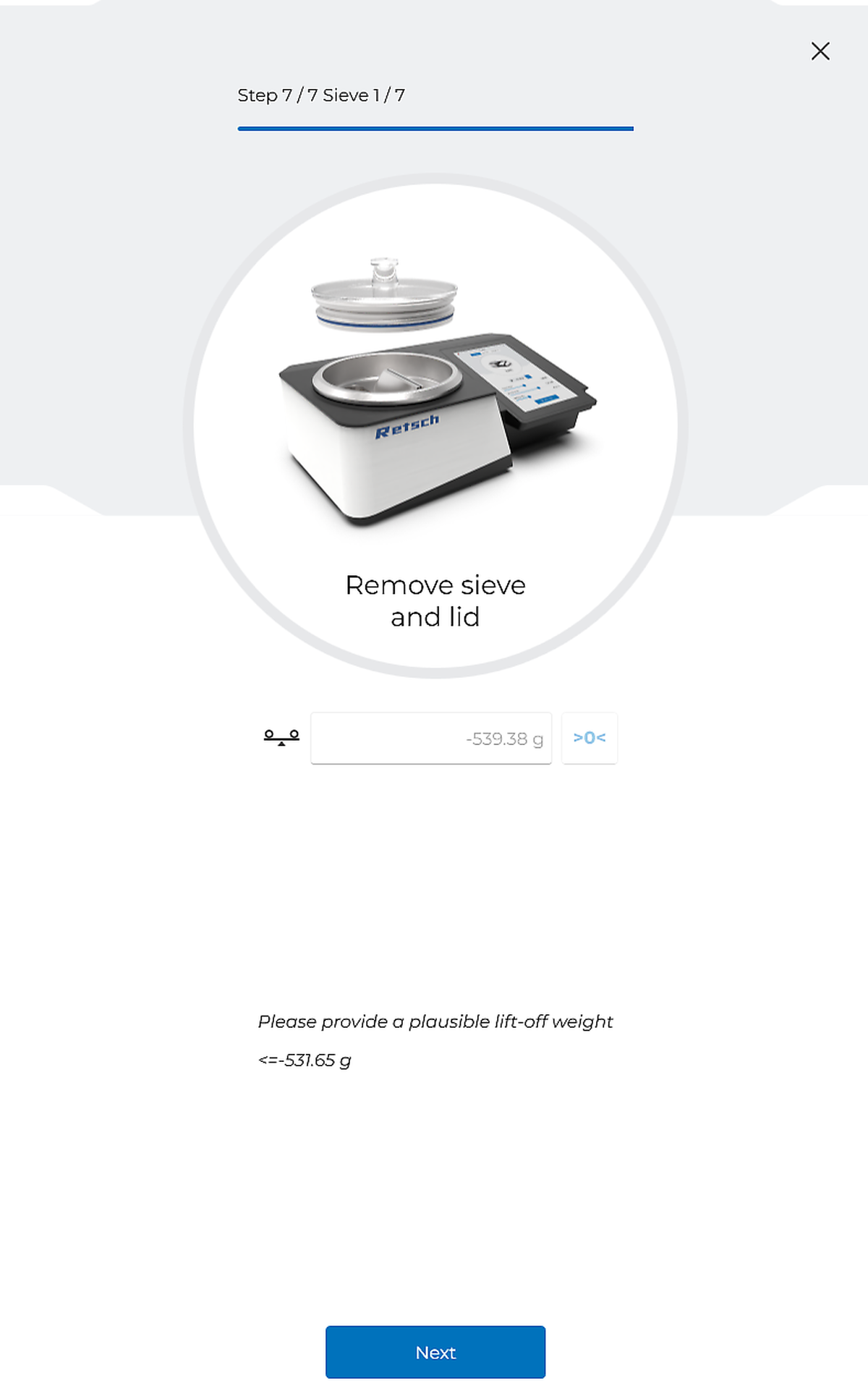 オプションの『計量アシスタント』は、ふるいの過負荷によるエラーを防ぎつつ、信頼性の高い分析に必要な最小量を確保するため、適切な試料量を提示します。